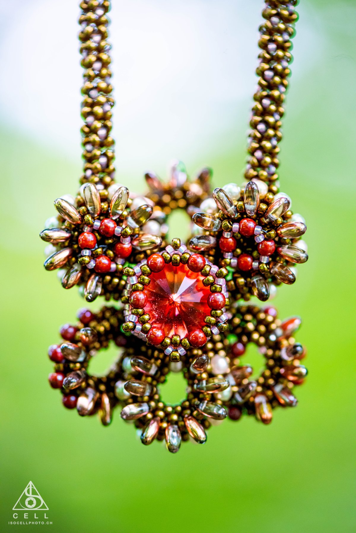 Il y a une quinzaine d'années que j'ai découverte les infinies possibilités créatives qu'offre le travail avec les perles de verre, de cristal et des pierres semi-précieuses. Et depuis, je crée sans fin.